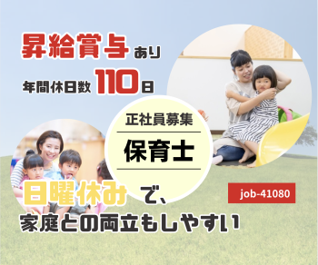 音楽や芸術を取り入れた季節行事も多...給与 月給 195,700円〜243,400円 交通 山田小学校前バス停から徒歩2分 勤務時間 変形労働時間制(1ヶ月単位)