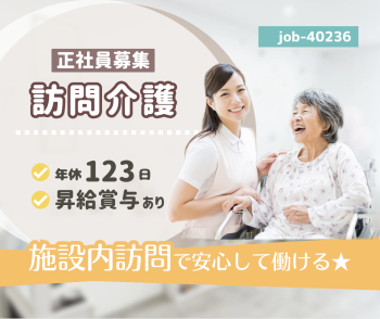 | 休日・休暇 | 年間休日数123日(勤務表による) 有給休暇は採用日に20日付与 |