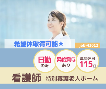 | 休日・休暇 | 4週8休(シフトでの休日) 6ヶ月経過後の年次有給休暇日数 10日 年間休日数105日 |