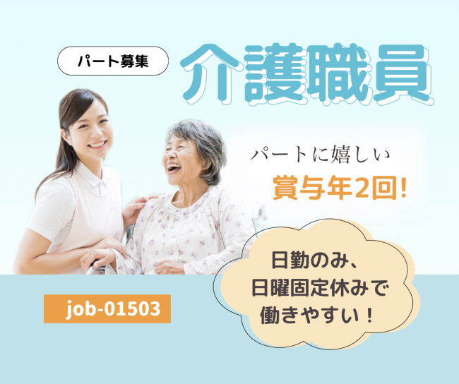 | 仕事内容 | (高齢者)デイサービスセンターにおける介護支援業務全般をお願いします。 (入浴、排泄、レクリエーション) ※就業時間応相談。週3日〜4日シフト制(日曜日休み) ※応募前職場見学可能です |