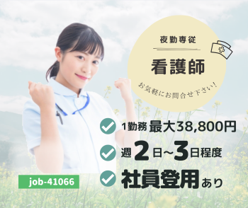 実務経験者優遇★夜勤手当8,000円/回支給で最大月給28万円以上も目指せる!昇給賞与あり、年間休日数115日、退職金制度あり