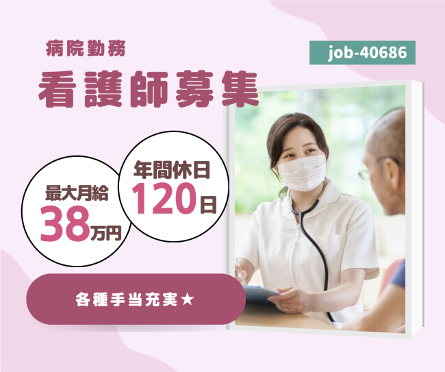 資格必須★賞与年2回×夜勤手当込みで月給38万円以上も目指せる!完全週休二日制で年間休日120日なので家庭との両立もしやすい♪