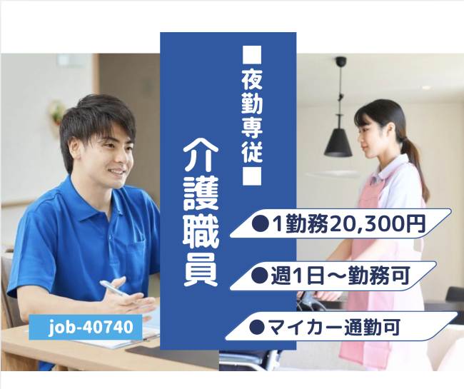 | 仕事内容 | 特別養護老人ホームこすど蒼丘の里での夜間の介護業務。 ・見守り、排せつ介助、コール対応等が中心の業務になります。 |