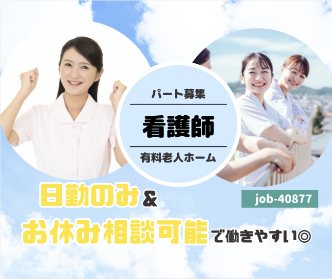 | 求める人材 | 【資格】 看護師 普通自動車運転免許 ★看護経験がある方 ★笑顔と思いやりを大切にできる方大歓迎です! |