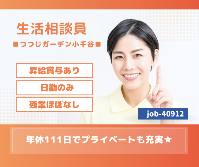 | 求める人材 | 【年齢】〜64歳以下(定年年齢を上限とするため) 【資格】 社会福祉士、社会福祉主事、社会福祉主事任用資格(3科目主事のいずれか必須) 普通自動車運転免許 ※必須 ★介護施設などでの就業経験がある方 |