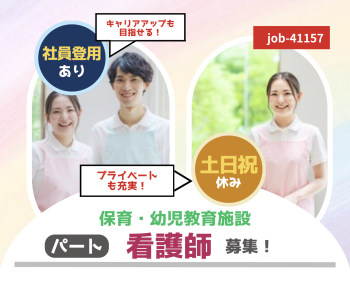 | 休日・休暇 | 月単位のシフト制/希望休制度あり(3日/月) 公休は契約日数によって変動 6ヶ月経過後の年次有給休暇日数 3日 |