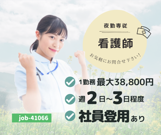 ジェロントピア新潟では、夜勤専従の看護師を募集しています。