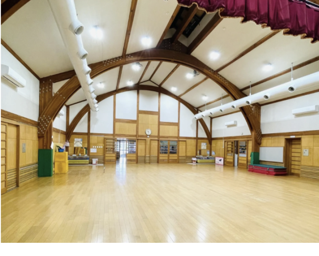 園舎は広いホールや園庭、自園調理が可能な調理室などを備え、