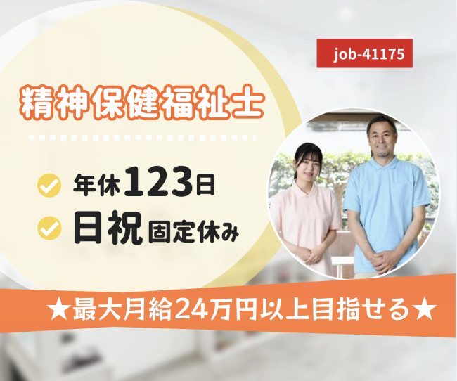 | 求める人材 | 【年齢】〜59歳以下(定年年齢を上限とするため) 【資格】 精神保健福祉士 普通自動車運転免許 ★相談員業務を行ったことがある方歓迎 |